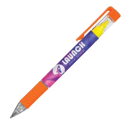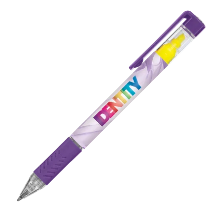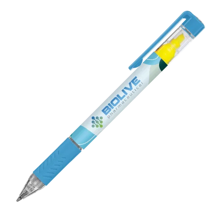 De DELOS balpen Bright is een multifunctioneel item dat een balpen combineert met een gele textmarker. De pen kan full colour en 360° bedrukt worden via digitaaldruk/folietransferdruk. Merk: Peekay.