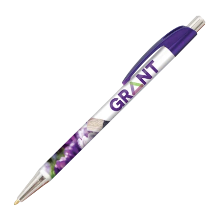 De DIA balpen Chrome is een slanke, full colour bedrukte balpen met een stijlvolle, gebogen clip. De pen kan 360° bedrukt worden via digitaaldruk/folietransferdruk. Merk: Peekay.