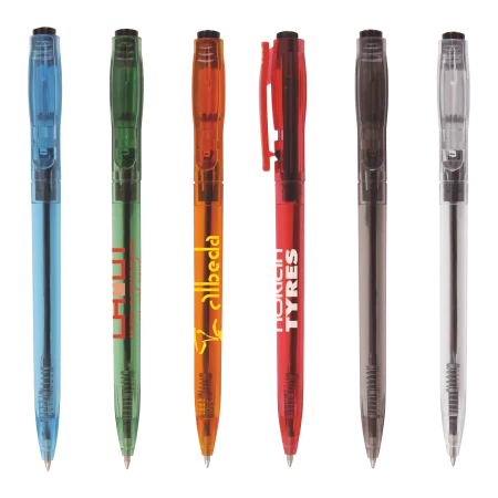 De SAL kunststof balpen Peekay heeft een transparante houder en een zwarte drukker. Deze pen is blauwschrijvend en in diverse kleuren leverbaar. Merk: Peekay.