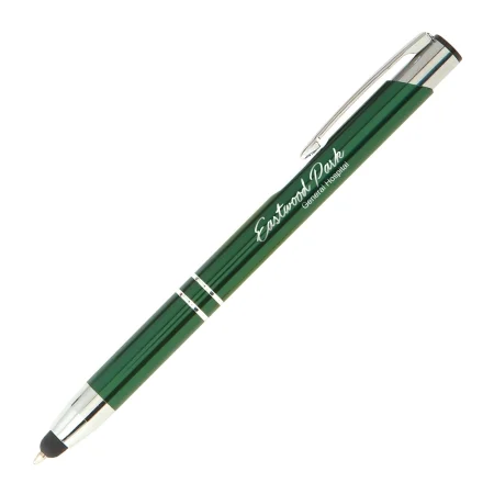 De SAMANA Stylus balpen shiny heeft een glanzende afwerking en combineert een klassieke balpen met een stylusfunctie voor touchscreens. De pen is te personaliseren met lasergravering. Merk: Peekay.